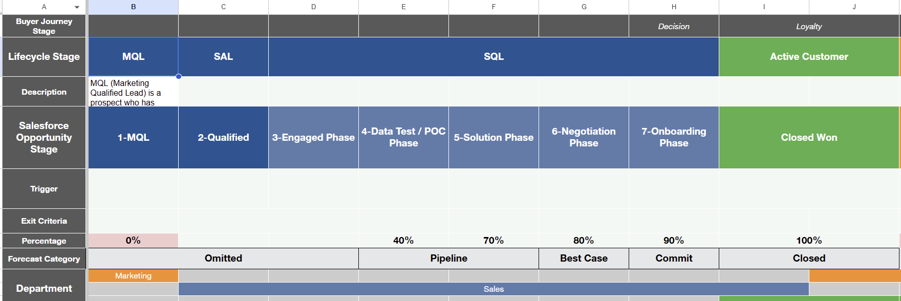 A common next step, after defining triggers in the Buyer Journey template, is to implement them in your system of record, usually via a lifecycle in HubSpot or Status in Salesforce, depending on where you want to manage the client lifecycle.